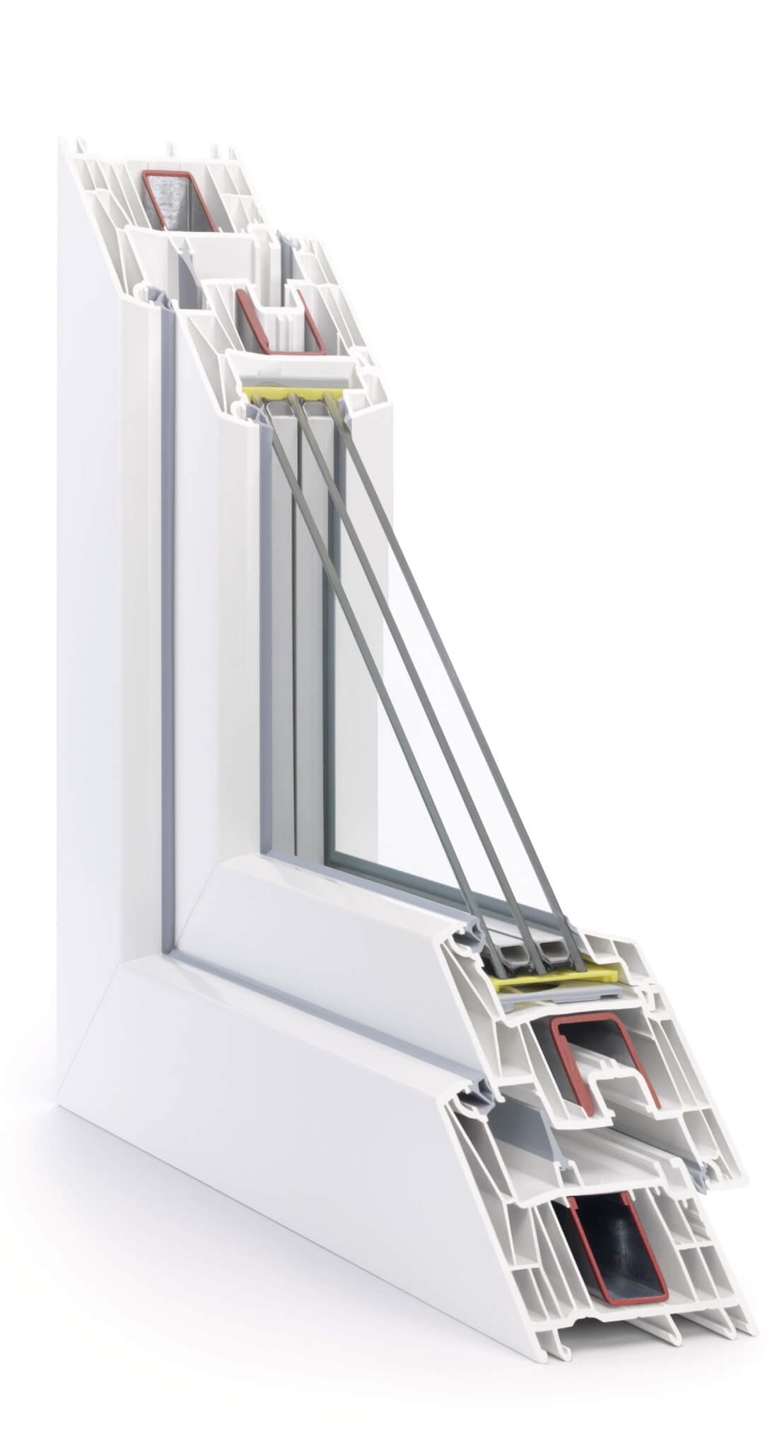 Пластиковые трёхстворчатые окна из премиального немецкого ПВХ профиля REHAU Geneo производства Германии – это надёжная конструкция с улучшенными характеристиками.